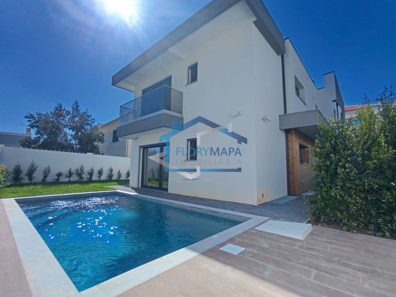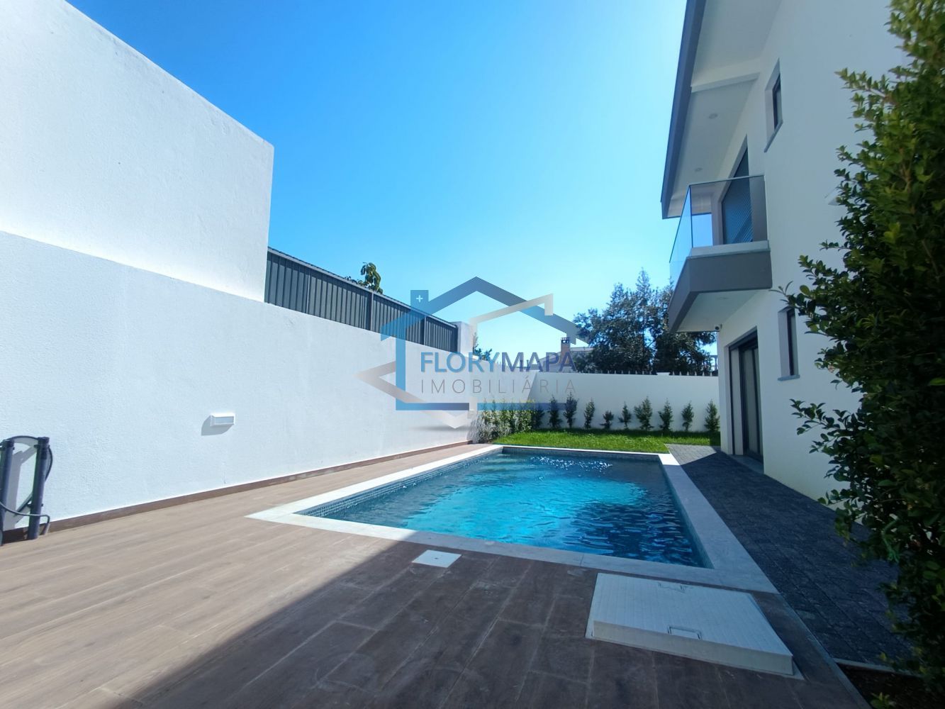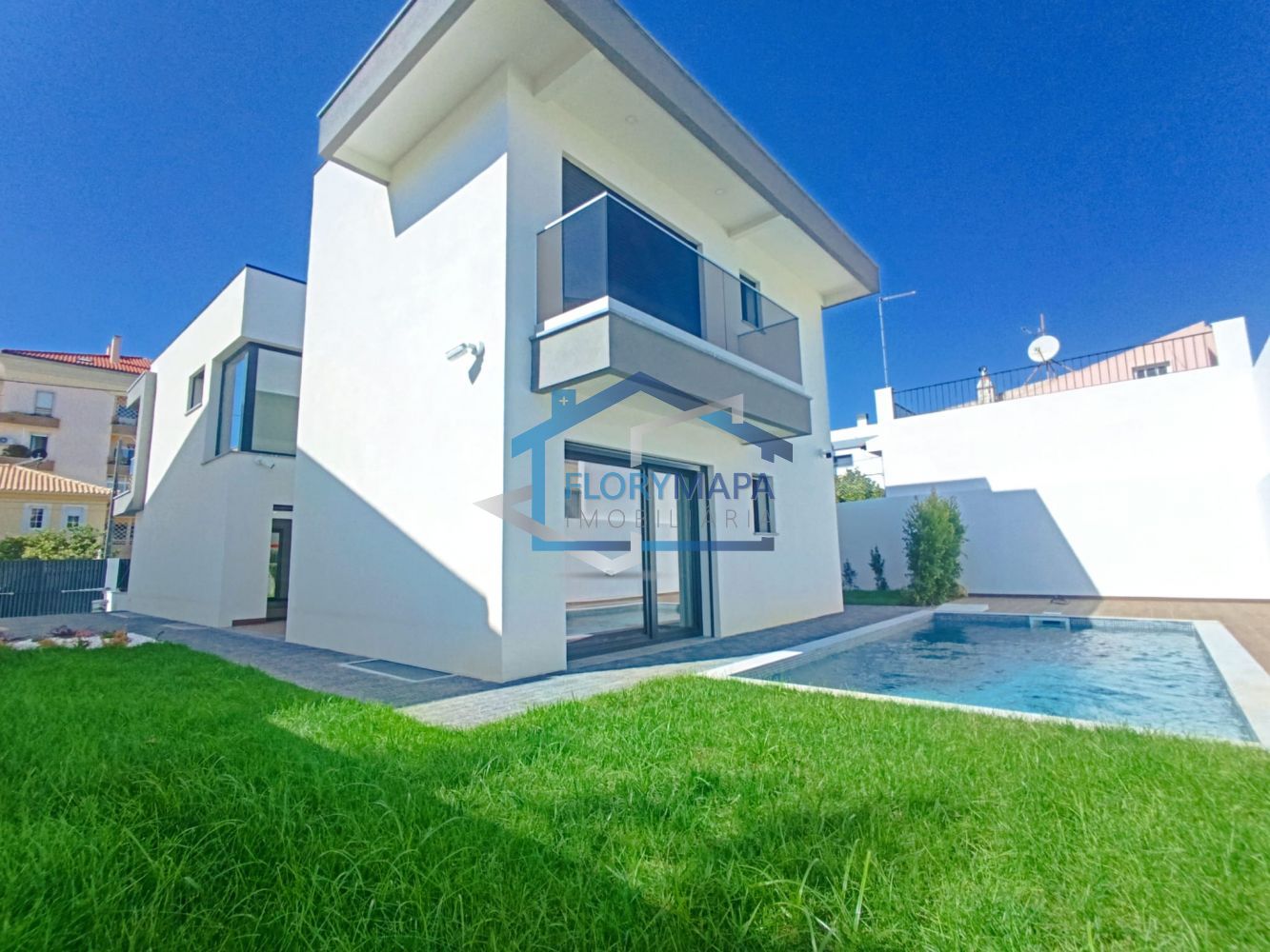 Rua Grupo Instrução Popular 56B Amoreira 2645-205, Alcabideche**Moradia Nova e pronta a escriturar - T4 +2 com Piscina ** Descubra esta magnífica moradia independente T4 +2, localizada no encantador concelho de Cascais. Com uma arquitetura moderna e acabamentos de alta qualidade, esta casa foi projetada para oferecer conforto e funcionalidade em cada detalhe. A espaçosa sala em open space, com uma cozinha equipada com eletrodomésticos AEG, proporciona um ambiente perfeito para momentos em família e entretenimento. O acesso direto ao jardim e à churrasqueira torna os dias de verão ainda mais agradáveis. No primeiro andar, encontram-se três suites, todas com varandas privativas, sendo a master suite um verdadeiro refúgio, com roupeiro/closet iluminado. A cave oferece um espaço multifuncional, ideal para um ginásio ou escritório, além de uma casa de banho e amplas áreas de arrumação. A generosa piscina aquecida, rodeada por belos jardins, convida ao relaxamento e à diversão. Com um sistema de domótica integrado, ar condicionado invisível e aquecimento através de bomba de calor, esta moradia garante eficiência energética e conforto durante todo o ano. A localização privilegiada, próxima das praias e serviços essenciais, torna esta casa uma excelente oportunidade para quem busca qualidade de vida. Não perca a chance de viver neste verdadeiro paraíso em Cascais! Principais características : *Sistema de cobertura invertida/plana com isolamento térmico/acústico, impermeabilização e lajeta térmica; *Grandes aberturas para entradas de luz; *Acabamentos exteriores em Capoto, painel de madeira, “Ripado“ de alta densidade; *Caixilharia em PVC, excelente comportamento térmico/acústico, vidro duplo, guardian-sun e oscilo-batente; *Estores elétricos térmicos em alumínio; *Guarda corpos em vidro temperado escurecido em todas as varandas; *Porta de Entrada de Segurança (Blindada); *Madeiras em Sucupira, 3 suites, escritório ou quarto no rés-do-chão, 5 casas de banho, todas elas com janela; * Casas de banho com louças suspensas, radiadores toalheiros elétricos; *Tetos falsos com iluminação LED embutida; *Aspiração central de nova geração (auto limpeza) Vac Dynamic *Bomba de calor Aquapura Split “AQS” aquecimento de águas sanitárias A + com sistema de retorno; *Ar condicionado invisível por conduta embutida DAIKIN (sistema Hotel), quente, frio, desumidificador sistema “inverter”; - Alta Eficiência Energética; * Sistema VMC (Ventilação Mecânica Controlada) para renovação do ar interior da habitação *Sistema de Domótica integrado em toda a casa, alarmes incluídos, iluminação por sensores, tomadas, estores, videoporteiro, câmaras, sensores de movimento e luminosidade, estação meteorológica entre outros com monotorização á distância; *Central solar na cobertura para produção da sua própria energia através de painéis fotovoltaicos e inversor Híbrido; *Cozinha moderna, linhas retas, iluminação LED totalmente equipada, equipamentos AEG, Bancada, roda Bancada e entre móveis em Silestone antibacteriano; *Churrasqueira exterior com apoio junto da Cozinha; *Portões automatizados com comando; *Garagem/parqueamento para 4 Viaturas; *Cave com espaço para convívio de 40m2, garrafeira bar, lavandaria, zona técnica e casa de banho completa; *Piscina Exterior com filtragem da água em areia e sal na medida de 6 x 3 x 1,40, água aquecida através de bomba de calor autónoma interligada ao sistema solar. * Jacuzzi exterior junto da piscina